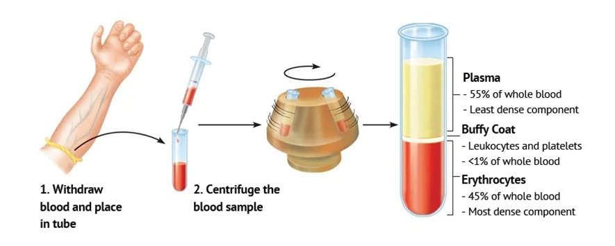 - Processamento: O plasma com alta concentração de plaquetas é isolado.